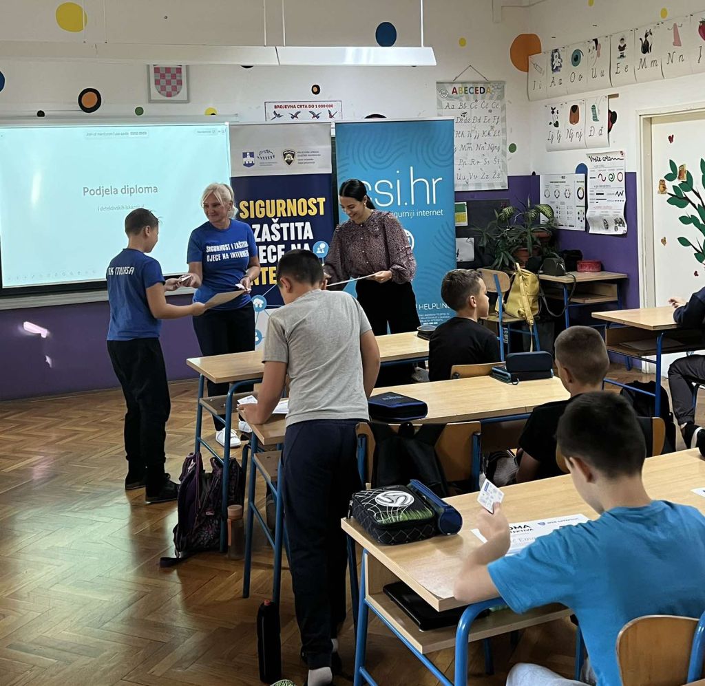 U okviru jesenskog ciklusa edukacija, 13. i 14. listopada 2025. posjetili smo Osnovnu školu Bilje, gdje su učenici pokazali velik interes i aktivno sudjelovali u radionicama. Kroz razne aktivnosti, postali su naši mali pomoćnici u stvaranju sigurnijeg interneta.